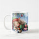 Sleeping Christmas Elf with Calico Kitten Coffee Mug