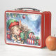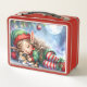 Sleeping Christmas Elf with Calico Kitten Metal Lunch Box