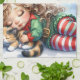 Sleeping Christmas Elf with Calico Kitten Tea Towel