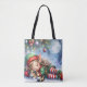 Sleeping Christmas Elf with Calico Kitten Tote Bag