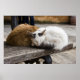 A pair of cats sleeping on an old bench at a Cretan monastery.