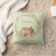 This cute baby nursery throw pillow has an adorable little spotted deer fawn sleeping within a soft sage green and pink tan leaf wreath. Your baby's name is in script text above the fawn image, and the birth date and weight is below the image. The back of the pillow has the same image, with an additional text field, which you may easily change or even remove. This makes a wonderful baby shower gift!