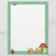 This cute cartoon letterhead has a green border with dog bones running along all four sides, and a dog sleeping in front of a dog house on the bottom.