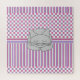 An image of a grey sleeping cat with a smile on it's face against a pink, purple and grey pattern is a unique design for feline lovers.