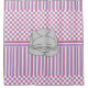 An image of a grey sleeping cat with a smile on it's face against a pink, purple and grey pattern is a unique design for feline lovers.