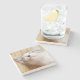 The coasters are gorgeous, a quality feel and heavy weight. They look like a precious archeological find. A rustic stone juxtaposed with a modern floral black and white print. I like the way the print goes slightly imperfect on the cut stone edges giving them a kind-of natural beauty.