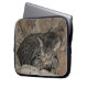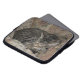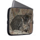 This laptop sleeve features a photo of an adorable sleeping kitty. She looks very cosy snuggled into a comforter that has a tan background complementing her tabby markings.