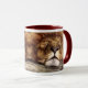 A perfect gift for big cat and lion lovers: A reproduced airbrush painting of a sleeping lions head, resting on a tree trunk. Wonderful animal art which will make your tea, coffee or chocolate taste even better and brighten up your office or kitchen.