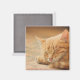 Closeup photograph of a peacefully sleeping orange tabby cat on a warm rug