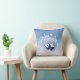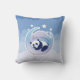 Cute pillow with a panda sleeping on the moon, white stars and blue cloudy background.