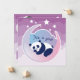 Cute card with a panda sleeping on the moon, white stars and purple cloudy background. On the back, customise the card with your baby's photo and birth info.