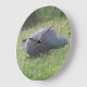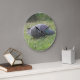 This awesome clock features a photograph of a wild Pigeon taken in my back garden. The bird was pecking about in the grass looking for seed that had been knocked off a bird feeder. As it put its head down to peck it closed its eye and as a result looks as though it is sleeping.