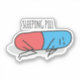 Featuring the amusing phrase "Sleeping Pill" in a charming and eye-catching font, this sticker adds a touch of humour to the pharmacy world. The centerpiece of the design is an adorable illustration of a pill, complete with a tiny pillow and snuggled under a cosy blanket, peacefully dozing off. It's a delightful nod to the world of pharmaceuticals while offering a good chuckle.