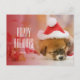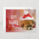 Sleeping puppy wearing a Santa hat Holiday Postcard