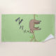 This beach towel has a cute illustration of a sleeping sloth on a branch of tree. It is a fun design suitable for all procrastinators.