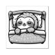This delightful design features a charming sloth nestled comfortably on a bed with pink bedposts and a blue polka-dotted comforter. The sloth’s serene expression, coupled with the floating Z’s, perfectly captures the essence of a peaceful slumber. The cartoonish style, bold outlines, and vibrant colours make this illustration both eye-catching and heartwarming, ideal for anyone who loves adorable animal art.