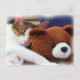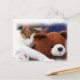 Share this cute postcard of a sweet tabby cat sleeping with a teddy bear. Perfect for all animal lovers