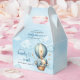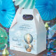 How adorable are these sleeping teddy bear hot air balloon favour boxes for a boy baby shower party? The delicate design of each box is sure to charm your guests as they get a glimpse of the cuddly bear peacefully sleeping inside the hot air balloon. These favours are not only precious but also practical, serving as a delightful keepsake for your guests to take home. It's the perfect way to thank them for joining in the celebration of your new little one.