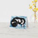 Animal themed note card featuring a reproduction of an original watercolour illustration by Lisa Marie Robinson. A black and white tuxedo cat sleeping on a blue blanket. Copyright © Lisa Marie Robinson. All rights reserved.
