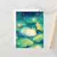 This mesmerizing design features an incredibly sweet white axolotl fast asleep and floating in a peaceful, serene pose. Rendered in a lush, luminous watercolor style, the axolotl has a soft glow and a gentle smile, with its feathery green gills fanning out gracefully. The character is nestled within a magical night pond filled with massive green lily pads and blooming peach-colored lotus flowers that radiate a soft warmth. The dark teal water is alive with glowing golden sparkles and floating light orbs that illuminate the scene with a dreamlike, ethereal quality. The overall aesthetic is enchanting, bright, and full of natural wonder, making it an irresistible choice for any fan of marine life, amphibians, and magical nature art. This cheerful axolotl postcard is a wonderful choice for sending a "sweet dreams" get-well note or a mystical greeting to a friend who needs a moment of calm. You might choose to use this cute animal card for an enchanted garden-themed birthday invitation or to celebrate a relaxing aquarium visit with your family members. It also makes a precious decorative piece for a nursery wall or a bright addition to a fantasy journal as a small token of happiness. This versatile design is also an excellent choice for a mystical dinner party invitation, a thank you note for an animal lover, or as a heartwarming way to share a message of joy for any situation or event.