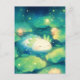 Sleeping White Axolotl in Magical Night Lotus Pond Postcard