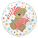 An adorable, sleepy little brown teddy bear wears a pink and white striped night cap and holds a pink blanket. Behind the bear is a pillow and multi coloured stars. This cute dresser or cabinet knob is perfect for a little girl's room. *This design uses graphics by Huckleberry Hearts, LLC, © www.Huckleberry-Hearts.com.