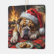 Sleepy Bulldog Dog Fast Asleep Santa Hat Christmas Ceramic Ornament