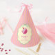 Make the celebration even more adorable with this sleepy cat birthday party hat featuring a pink kitty, tiny party hat illustration, cream label styling, mint bow accents, and cheerful yellow stripes. A sweet matching accessory for a 1st birthday party.