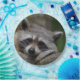 Adorable photograph of a sleepy raccoon on party products, cards and gifts.