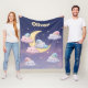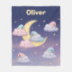 This personalised fleece blanket features pastel-coloured clouds wearing tiny nightcaps, peacefully resting on and around a crescent moon. Surrounded by glowing stars and a soft gradient of deep blues, purples, and pinks, this tranquil nighttime scene is perfect for nurseries and kids' rooms.