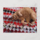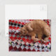 Sleepy Ginger Kitty on a red quilt Postcard