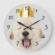 Sleepy Golden Retriever Puppy in Crown Yawning Large Clock