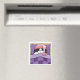 Whimsical cat art fridge magnet. A sleepy black and white cat lies tucked up in bed wearing a pink and white striped night cap. Created from an original painting © 2008 Lisa Marie Robinson