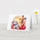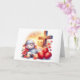 The front of this Orthodox Easter card is a sweet, innocent lamb sleeping before a cross and red eggs. The inside message reads: