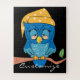 tired droopy-eyed owl on a branch to customise, personalise by changing to your name