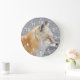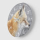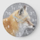 Stylish wall clock with white numerals featuring the photo image of a sleepy Red Fox. Face numbers are accompanied by cute, little paw prints at every 5 second mark. Use to decorate your living room, bedroom, or any other room. Select your clock style and size along with hand colour.