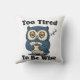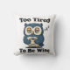 A playful square pillow with a retro owl expressing pure exhaustion and charm.