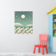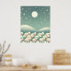 A flock of fluffy sheep amble across a snowy landscape under a watchful moon and a blanket of twinkling stars. The scene evokes a sense of peace and tranquillity, perfect for a child's imagination to wander. The artwork is rendered in soft, soothing colours, creating a calming and inviting atmosphere.