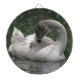 This awesome dartboard features a photograph of a beautiful swan. The swan is a juvenile bird, you can tell by the grey feathers on the head and the lack of an orange beak. It looks like the swan is sleeping but it is actually preening its feathers.