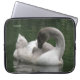 This awesome laptop sleeve features a photograph of a beautiful swan. The swan is a juvenile bird, you can tell by the grey feathers on the head and the lack of an orange beak. It looks like the swan is sleeping but it is actually preening its feathers.