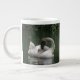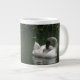 This awesome mug features a photograph of a beautiful swan. The swan is a juvenile bird, you can tell by the grey feathers on the head and the lack of an orange beak. It looks like the swan is sleeping but it is actually preening its feathers.
