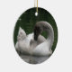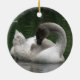 This pretty pendant style ornament features a photograph of a beautiful swan. The swan is a juvenile bird, you can tell by the grey feathers on the head and the lack of an orange beak. It looks like the swan is sleeping but it is actually preening its feathers.