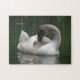This awesome puzzle features a photograph of a beautiful swan. The swan is a juvenile bird, you can tell by the grey feathers on the head and the lack of an orange beak. It looks like the swan is sleeping but it is actually preening its feathers.