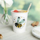This charming paper cup features an adorable whimsical bee that’s sure to brighten your day. With its classic yellow and black striped body, the bee exudes a playful yet endearing personality. Its sleepy, half-closed eyes add a touch of humour and cosiness, making it perfect for those mornings when you need an extra boost. The soft blue wings are speckled with delicate patterns, giving them a dreamy, airy quality that enhances the bee’s gentle appeal. A fun and functional nature -inspired design.