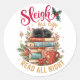 A festive and cheerful Christmas design showcases an adorable black kitten nestled on a stack of books. Beside the books are vibrant poinsettias, pine branches, holly berries, and a steaming cup of cocoa. Golden stars frame the scene, adding a magical touch. The colourful text reads, "'Sleigh all day, read all night." This delightful design is featured on a variety of products, making perfect gifts for book lovers.
