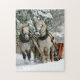 A lovely puzzle depicting a winter scene of a sleigh ride. The sleigh is pulled by two strong horses. A fun puzzle to put together especially for those that like pictures of snow. s