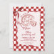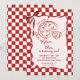 If you looking for a elegant and easily edited unique 1st birthday invitation, this one is perfect for you. As you see, it features red magenta hand written script with whimsical slice of fun on white background. And Italian red hand drawn pizza slice and and a red frame. With whole info that can be customized easily by clicking on the personalize button.