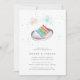 Festive engagement party invitations feature a rainbow-hued slice of layer cake accented with aqua confetti and watercolor sparklers. Personalise with your engagement party details in grey lettering. Ideal for same-sex, gay, LGBT couples or anyone who shares the sentiment that love is love!