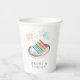 Perfect for engagement parties, rehearsal dinners, or wedding showers, these festive paper cups feature a watercolor slice of layer cake in rainbow hues, topped with sparklers and aqua confetti. Personalise with your names and wedding date or event date beneath.