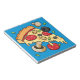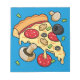 Colourful pop art style slice of pizza with pepperoni, mushrooms, green pepper and olive toppings.